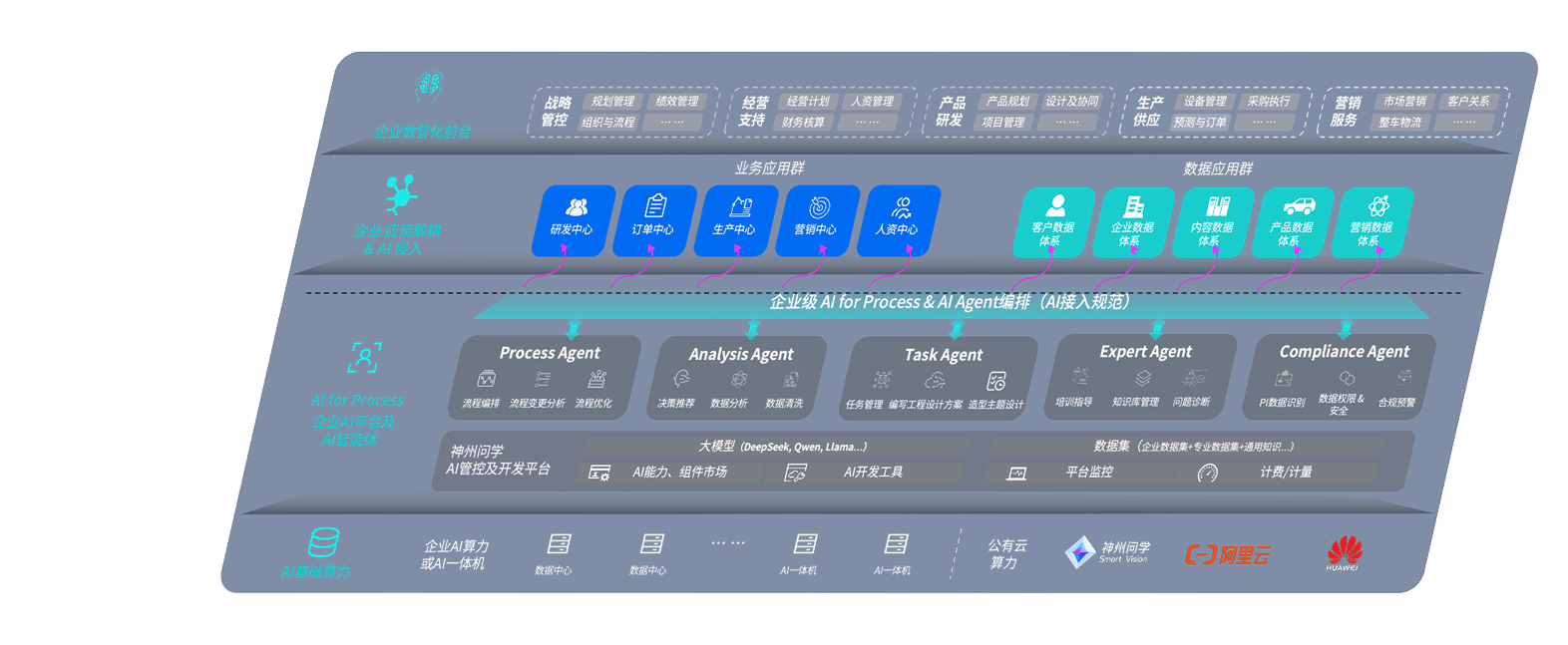 天辰平台问学智车解决方案是一套基于AI技术的汽车行业智能化系统,,覆盖从底层算力到顶层AI应用的全栈方案。。。。方案由算力层、、、模型层和应用层组成:算力层,,,方案支持多种一体机配置,,,,具备云端灵活部署、、、、多云适配以及动态优化计算资源的能力;模型层,,,天辰平台问学平台版提供了企业级AI应用一站式构建与管理平台,,支持基于后训练强化技术的汽车企业专属模型的训练、、、、评测和运营;应用层,,,天辰平台问学DeepSeek版提供包括超级员工、、、智能招采、、、、智能营销、、智能客服、、、、AI for BI等一系列解决方案,,可助力汽车行业实现数字化转型,,,让管理更智能、、、、响应更敏捷。。。。