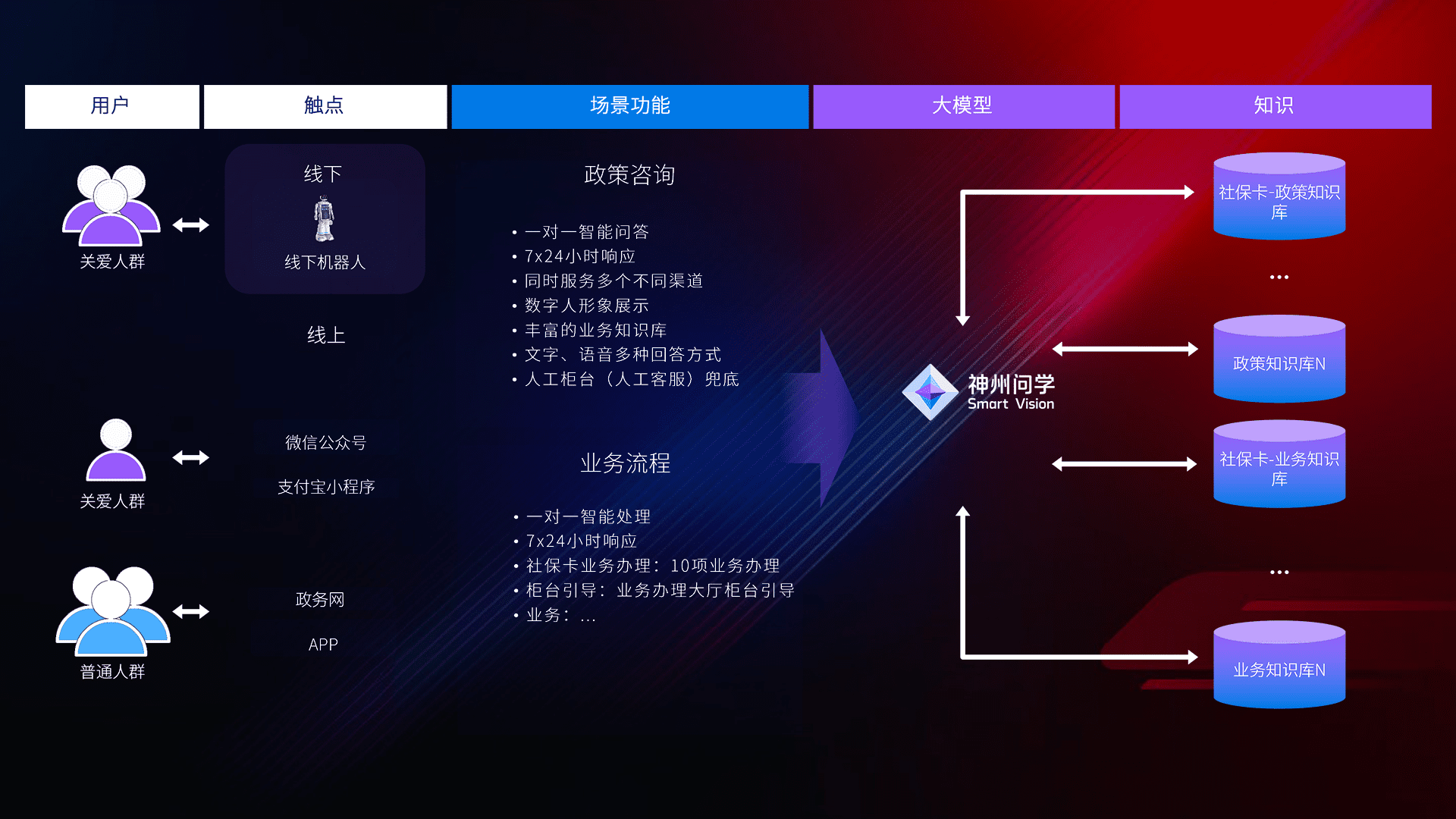 在服务大厅部署客服机器人,,,在线上应用和小程序配置客服数字人,,,,724小时为群众解答常规问题,,客服机器人无法处理的,,,,转现场人工处理。。。